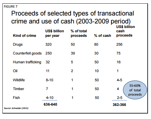 Specifically, Henry advocated a sudden cancellation and reissuance of all US$50 and $100 notes as a way to hurt "tax cheats, Mafiosi, and other pillars of the criminal community." Rather than a one-shot action, which would only annoy criminals, the idea was that "the recalls could be repeated, at random, every few years or so, raising the 'transaction costs' of doing illegal business."